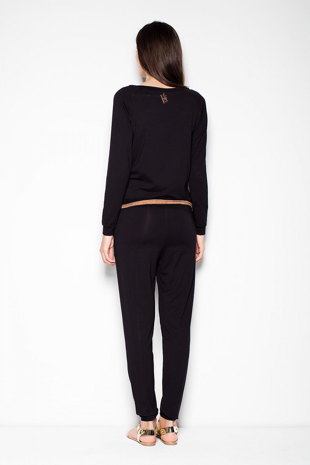 Chic long-sleeve overalls with long legs. Characterized by a pocket and a belt in a contrasting color. Very comfortable and at the same time very elegant.
